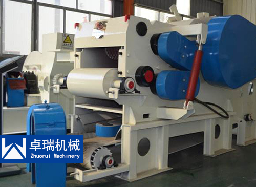 木料由進料口送入,當木料按接觸到削切刀片時,隨著削切刀盤的高速旋轉(zhuǎn)進行削切,所削切的木片在削切室內(nèi)由削切刀盤上的風葉所產(chǎn)生的高速汽流送出。